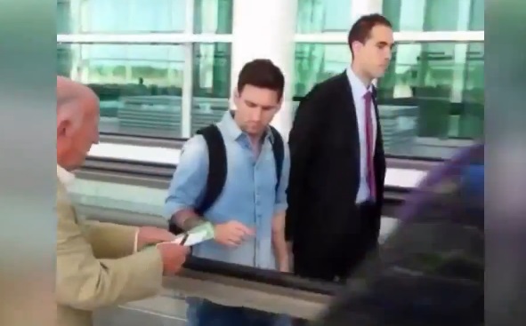Lionel Messi refuse un autographe à un vieux monsieur ! Lionel Messi et ses coéquipiers filmés lors de leur départ pour Madrid, pour la rencontre contre l'Atletico Madrid, hier. https://www.yout...