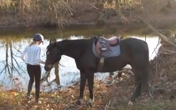 Une cavalière aide son cheval à vaincre sa peur de l'eau !