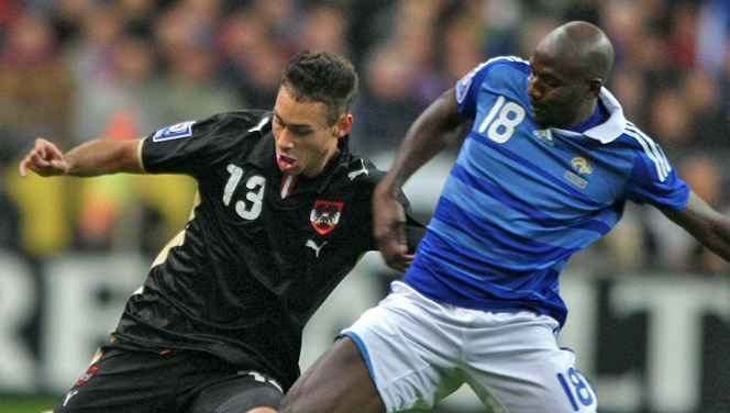 Deux supporteurs sur la pelouse du stade de France lors du match France-Autriche.