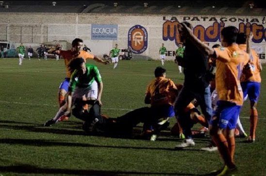 Cet arbitre argentin ne rigole pas, l'homme en noir a dégainé 12 cartons rouges après une bagarre générale lors d'un match de football en D3 argentine.