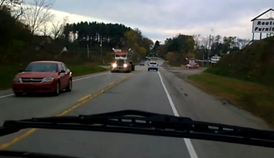 Deux hommes filment une voiture qui zigzague devant eux sur une route de Pennsylvanie (USA). La femme qui a causé l'accident s'est endormie au volant, elle rentrait chez elle après un travail de ...