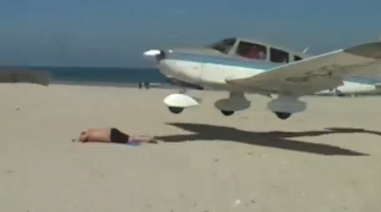 Un avion frôle un homme qui bronze sur une plage (VIDEO)