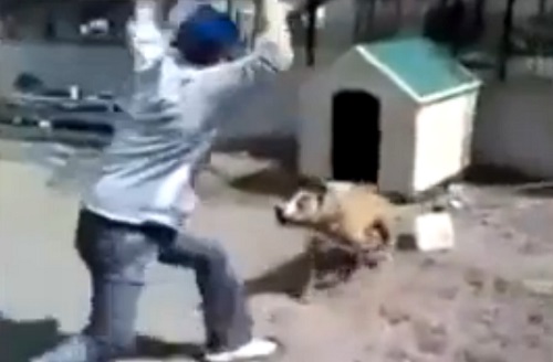 Un jeune s'amuse à embêter un pitbull attaché quand...