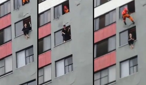 Voici une incroyable vidéo montrant un pompier brésilien tentant de sauver une femme au bord du suicide. Comme la situation semble être très délicate, il va utiliser une méthode bien à lui pour d...
