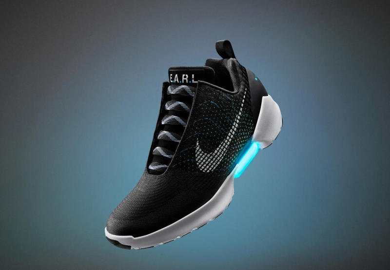 Nike avait déjà présenté une chaussure à laçage mécanique, mais il s’agissait d’une édition limitée, la Nike Mag, modèle très montant inspiré du film « Retour vers le futur II ». source : AFP