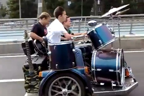 Des russes jouent de la musique dans un side-car (VIDEO)