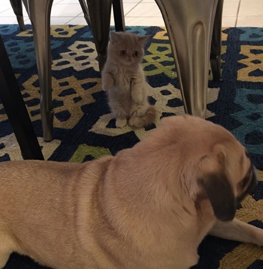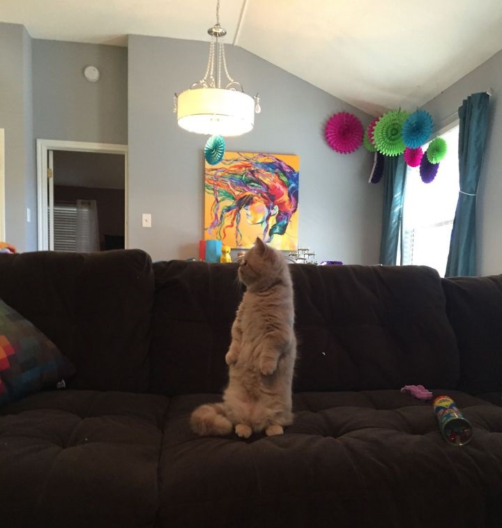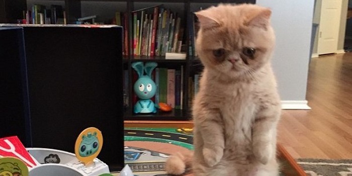 George n’est pas un chat comme les autres ! Ce chaton (un Munchkin) de 8 mois, marche debout sur deux pattes comme les humains.