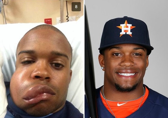 Découvrez le visage du joueur de baseball Delino DeShields Jr qui a reçu une balle en plein visage à plus de 145 km/h (90 miles).