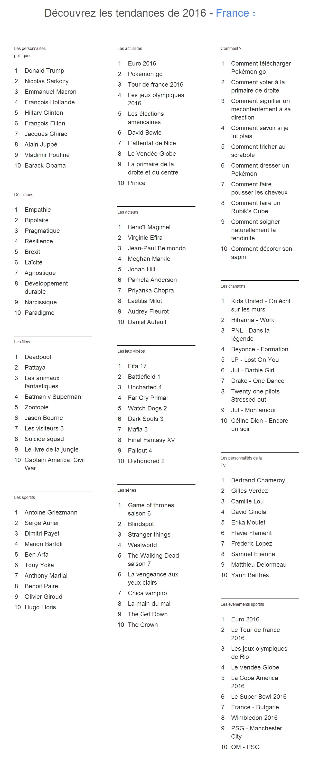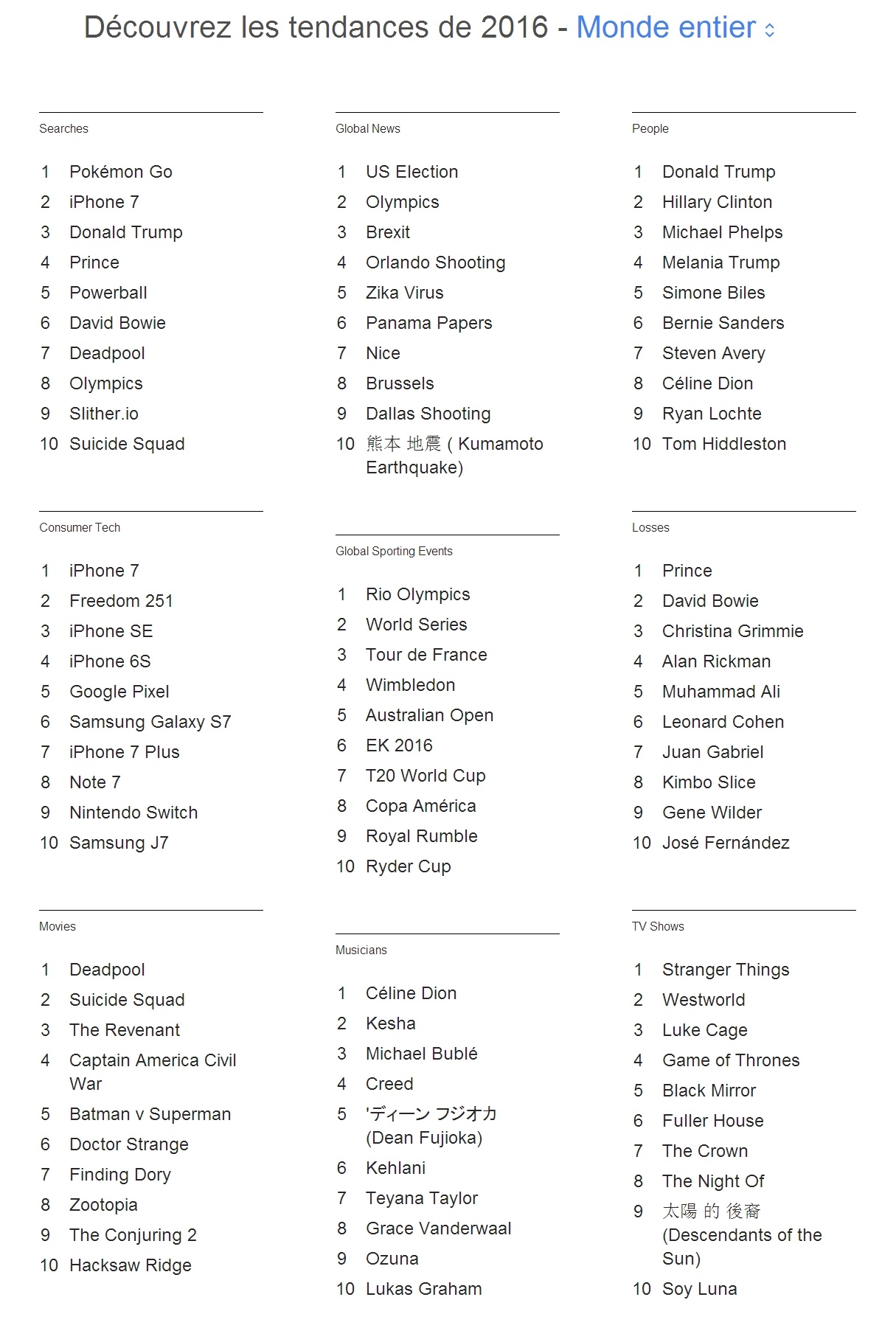 Les mots les plus recherchés sur Google en 2016