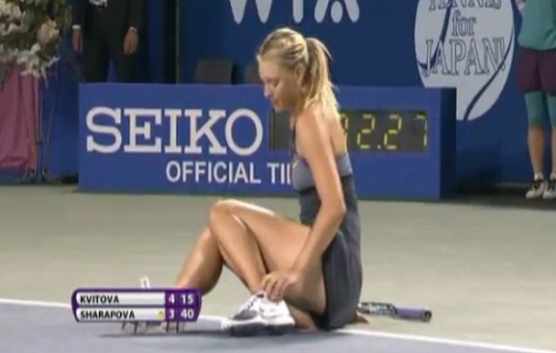 Maria Sharapova a été contrainte à l’abandon après s’être tordue la cheville gauche, jeudi, face à Petra Kvitova, en quarts de finale du tournoi WTA de Tokyo. Elle est forfait pour l’Open de Chine la semaine prochaine !