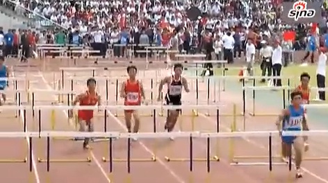 Ce Chinois veut absolument remporter ce 110 mètres haies ! Et pour y arriver, tous les moyens sont bons. Attention à la chute.