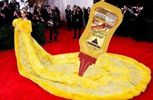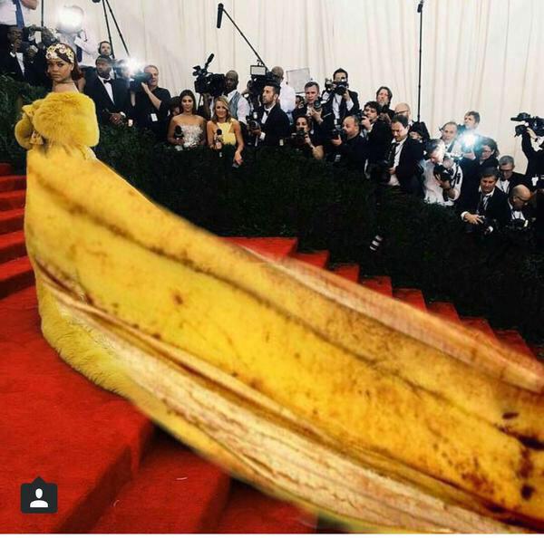 La robe jaune (du couturier chinois Guo Pei) que portait Rihanna au MET Gala, lundi au Metropolitain Museum of Art’s Costume Institute de New York, a été la cible de toutes les moqueries sur le net. Voici quelques détournements !
