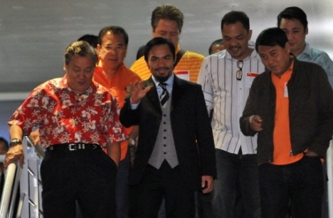 Le boxeur Philippin Manny Pacquiao, considéré comme le meilleur boxeur du monde toutes catégories confondues, est rentré au pays lundi en héros pour se consacrer à sa seconde carrière qui le verra b...