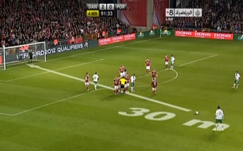 Le coup franc à la dernière minute de Cristiano Ronaldo lors du match de qualification à l'Euro 2012 face au Danemark ! Score final : 2-1 pour le Danemark. Pas encore qualifié, le Portugal a encore ...
