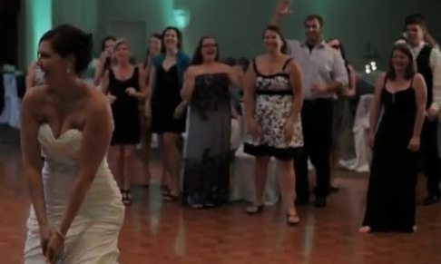 Elle se vautre en essayant d’attraper le bouquet de la mariée (VIDEO)