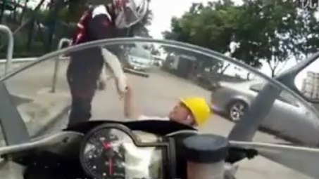 Hong Kong - Une femme se jette risiblement sur le pare-brise d'une moto roulant au pas, elle demande ensuite au motard de la dédommager. Madame peut définitivement oublier le cinéma. Tout est bie...