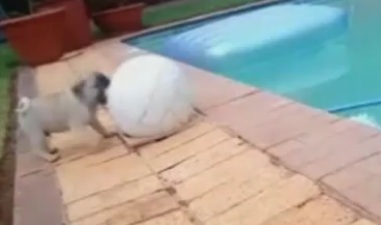 Voici ce qui se passe lorsqu'un chien tente de pousser un ballon dans une piscine, non non il ne tombe pas dans l'eau comme vous auriez pu le croire ...