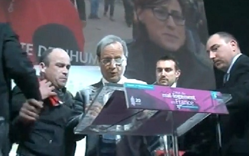 François Hollande a été enfariné par une femme. Il participait à la présentation du rapport de la fondation Abbé Pierre sur le logement. L'enfarineuse de Hollande admise en psychiatrie. Cette "m...