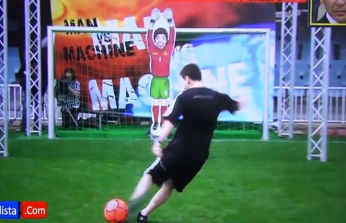 Le prodige argentin du FC Barcelone affronte dans une séance de tirs au but un robot-gardien. Un défi organisé par une chaîne de télévision japonaise qui voulait voir si Messi méritait son titre de "M...