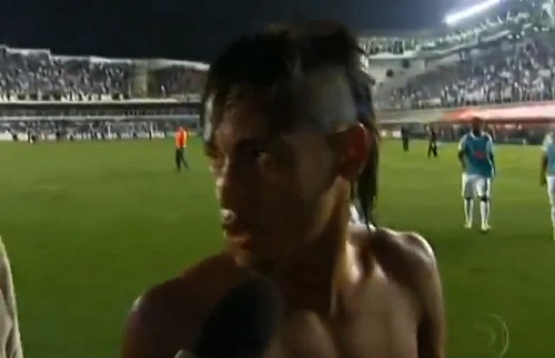 Attention à la caméra ! Copa Libertadores demi-finale aller du merdredi 13 juin : défaite de Santos (équipe de Neymar) contre les Corinthians (0-1). Le but d'Emerson
