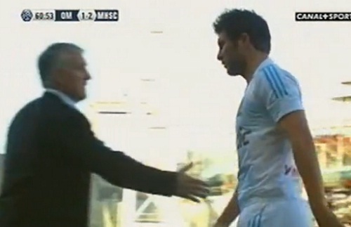 Didier Deschamps se mange un vent ! Gignac a refusé de serrer la main de Deschamps lors de son remplacement dans le match contre Montpellier (1-3.