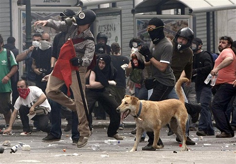 Scène insolite filmée le 19 octobre dernier dans les rues d'Athènes lors d'une manifestation contre l'austérité. Une manie n'a pas hésité à balancer des pavés sur les forces de l'ordre. ...