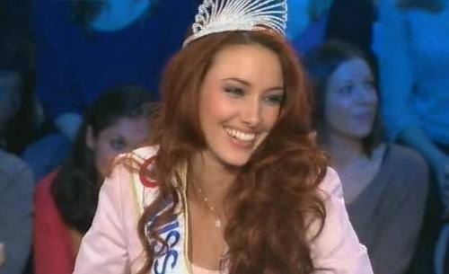 Miss France (Delphine Wespiser) dans l'émission "On n'est pas couché" présentée par Laurent Ruquier. source : fullhdready