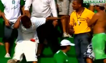 Bagarre entre quelques supporters et un agent de sécurité lors du match entre Guarani et Corinthians (0-0).