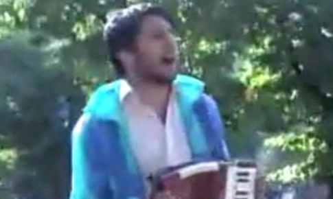 France - Alors que ce musicien joue de l'acordéon en chantant sur la terrasse d'un café, un homme en pleine conversation téléphonique est gêné par la musique. Voyez par vous même sa réaction très ...