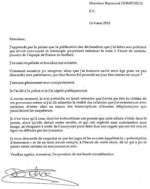 Dans ce courrier elle plaide le pardon des joueurs avec lesquels elle aurait eu des relations tarifées. Mais sans nommer personne. Quelques heures à peine avant que Raymond Domenech ne ...
