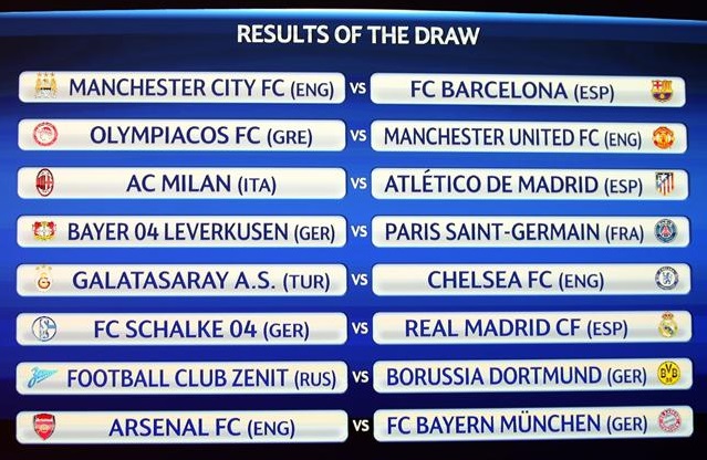 Le tirage au sort des 8es de finale de la Ligue des Champions 2013-2014, a été éffectué lundi 16 décembre à Nyon en Suisse.