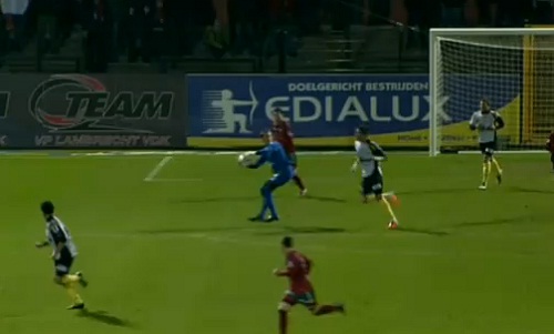 C’est en voulant relancer le ballon à la main que le Belge Sammy Bossut (gardien de Zulte-Waregem) a commis cette énorme boulette.