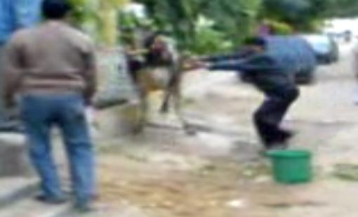 Il tente de donner un coup de main, pour calmer une vache, mais cette dernière ne se laisse pas faire.