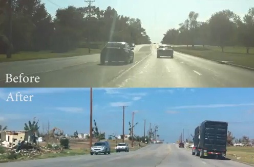 Montage vidéo qui nous montre les images d’une ville américaine avant et après le passage d’une tornade !