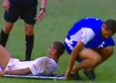 Si jamais vous êtes blessés, ne faites surtout pas appel à lui, levez vous et marchez comme si de rien était ! A moins que vous vouliez subir le même sort que ce pauvre joueur de foot …