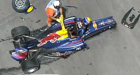 Un accident entre Mark Webber et Heikki Kovalainen au 11e tour a causé la neutralisation temporaire du Grand Prix d’Europe dimanche à Valence (Espagne).