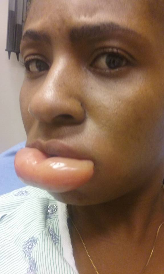 Le lendemain, sa lèvre inférieure a gonflé de manière inattendue. Paniquée, elle a prit quelques photos qu’elle a publié sur les réseaux sociaux avant de se rendre à l’hôpital. La jeune femme originaire de Floride a fait un angioedème, gonflement rapide de la peau.