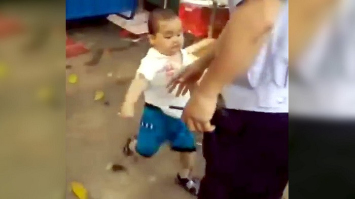 Très courageux, ce petit chinois de 3 ans défend sa grand-mère en repoussant des agents de police à coups de barre de fer et de cris.