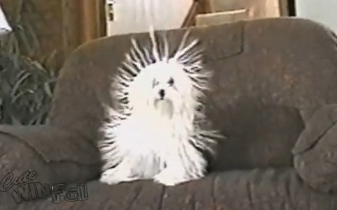 Après le chien dopé à l’hélium, place au chien qui se transforme en hérisson après s’être chargé en électricité statique.