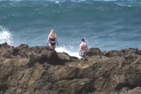Deux vacanciers à Hawaii se trouvent sur des rochers pour admirer l’océan, ils sous estiment les vagues et vont en faire les frais, ils peuvent s’estimer heureux de s’en sortir de cette manière …