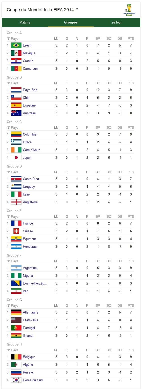 Le 3e match de la phase de poules est finie et 16 équipes ont obtenu leur qualification pour les 8es de finale. Voici, les affiches et le calendrier.