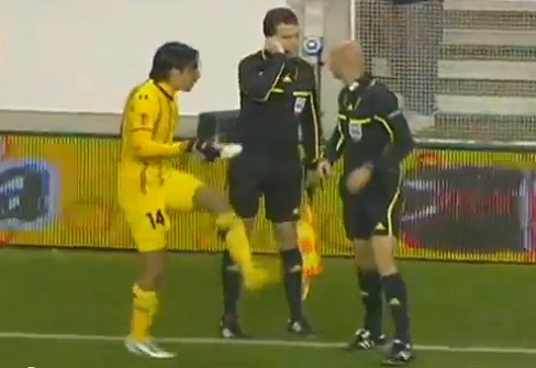 Yoav Ziv, le joueur du Maccabi Tel Aviv a écopé d’un carton rouge après avoir balancé sa chaussure sur le juge de ligne !