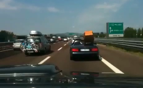 Un Italien filmé en train de rouler avec un cercueil sur le siège du passager de son cabriolet. « La place du mort » n’a jamais aussi bien porté son nom !
