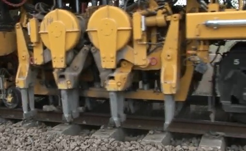 Le principe est simple, le train roule sur les ballasts avec ses roues et dépose au fur et à mesure les blocs de béton puis les rails. Un système judicieux, efficace et assez surprenant …