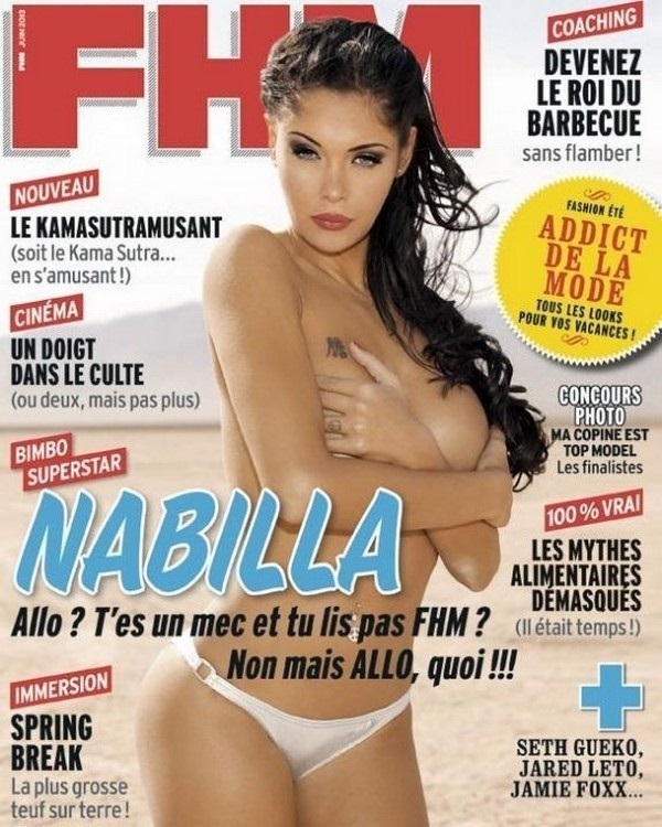 Nabilla, la bimbo des « Anges de la téléréalité » Topless en couverture du magazine pour homme FHM.