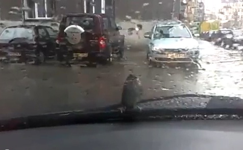 Attiré par la chaleur du moteur, un oiseau qui s’est posé sur les essuies-glaces d’une voiture, n’a plus envie de les quitter.