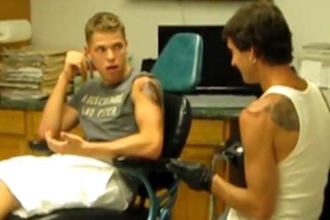 Un jeune homme trop sensible/peureux pour se faire tatouer !