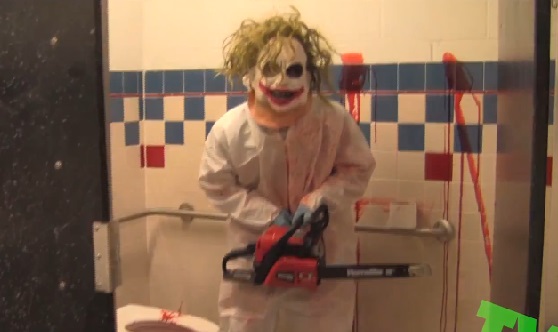 Caméra cachée – Massacre à la tronçonneuse dans les toilettes publiques (vidéo)