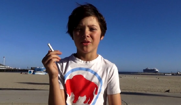 Un enfant demande du feu à des gens pour allumer sa cigarette (expérience sociale)