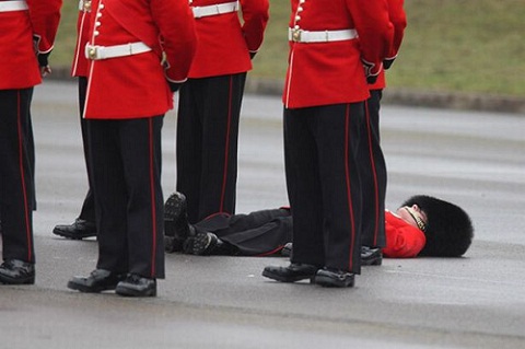 Évanouissement d'un garde (Irish Guards) au passage de Kate Middleton à l'occasion de la Saint-Patrick.